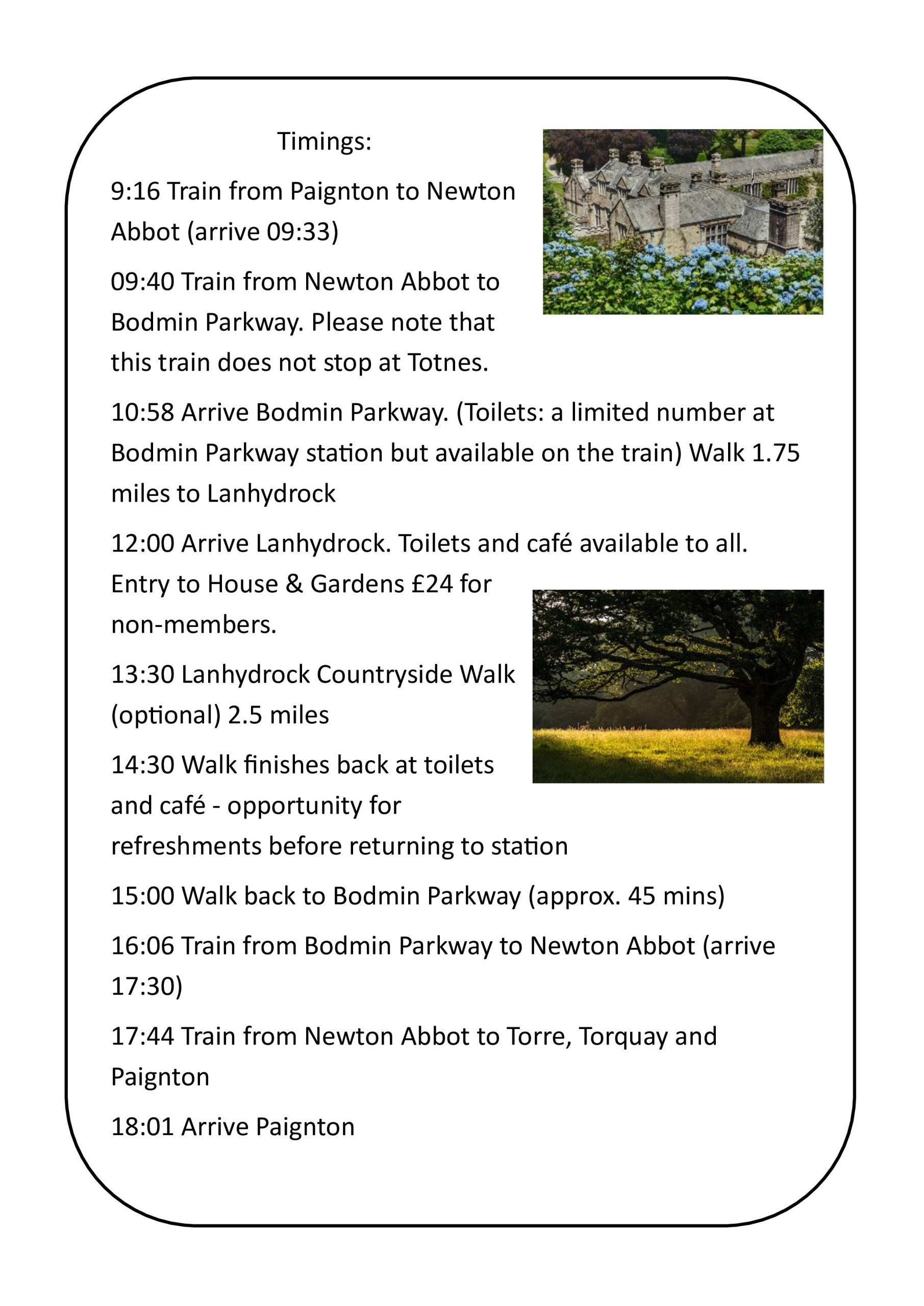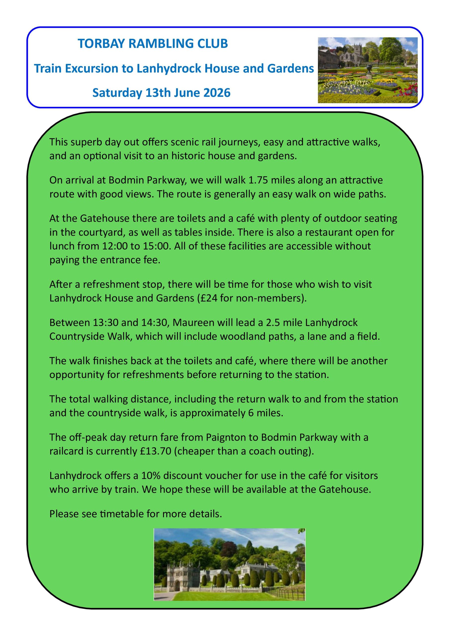 Lanhydrock House Excursion – Saturday 13th June